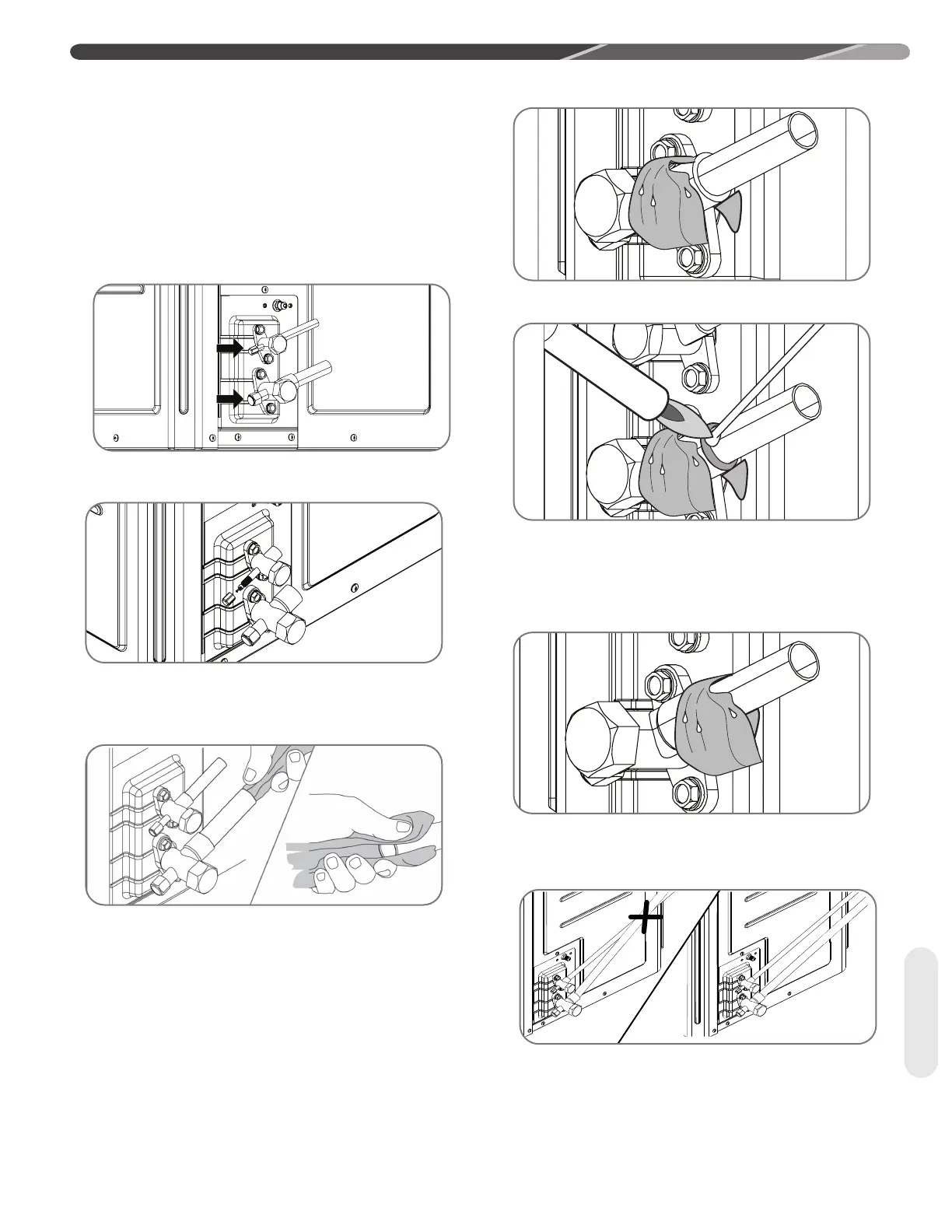 • Do not allow the bare vapor line and liquid line to be in