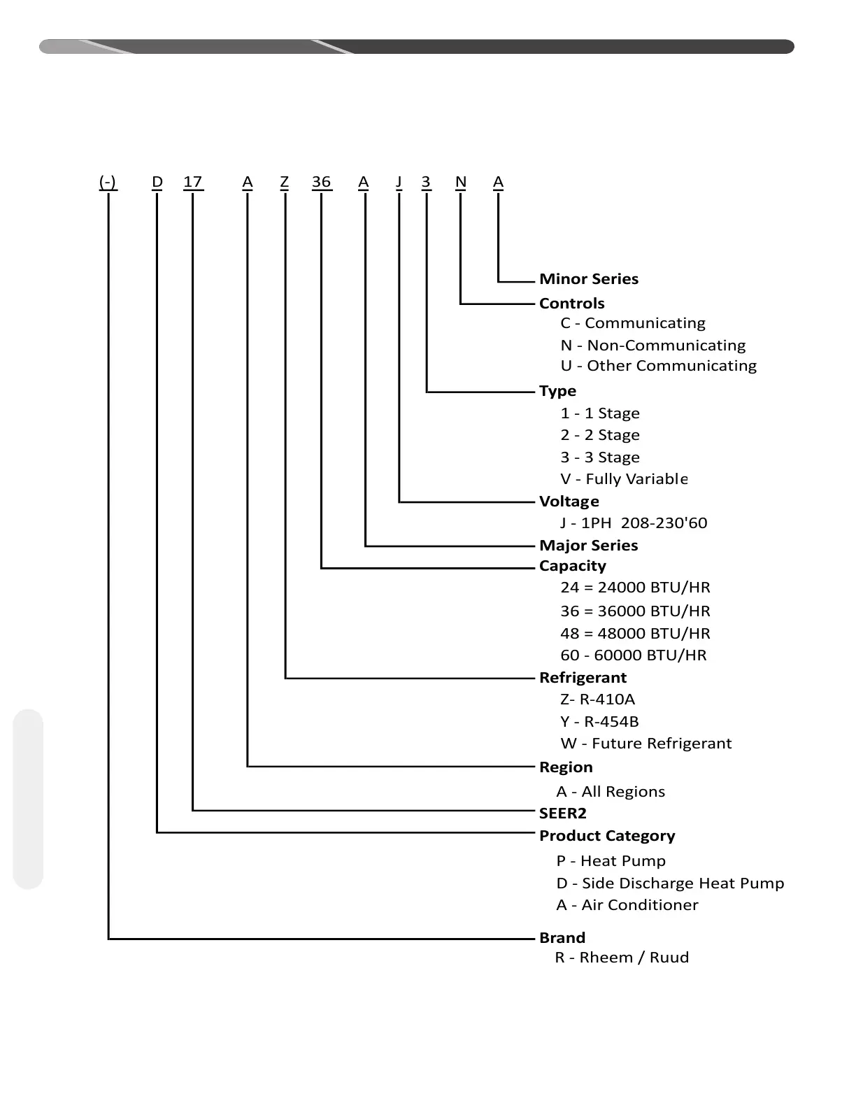 Ruud RD17AZ - UNIT SPECIFICATIONS; Model Number Nomenclature and Available Models