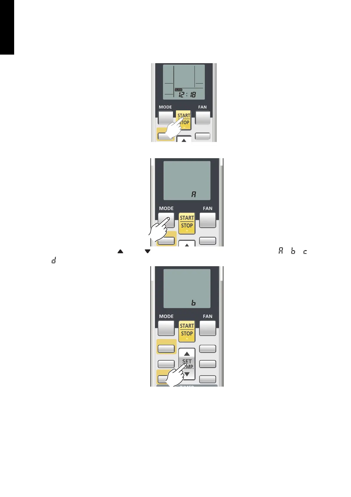 3. Press the SET TEMP. or the button to change the custom code between → → →