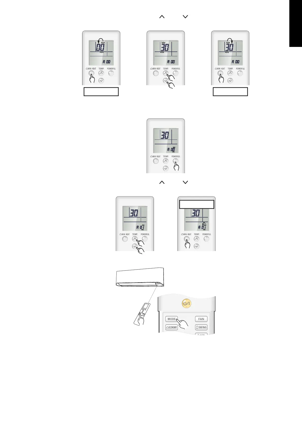 5. Select the function number by pressing the or the button. Each time the MIN. HEAT