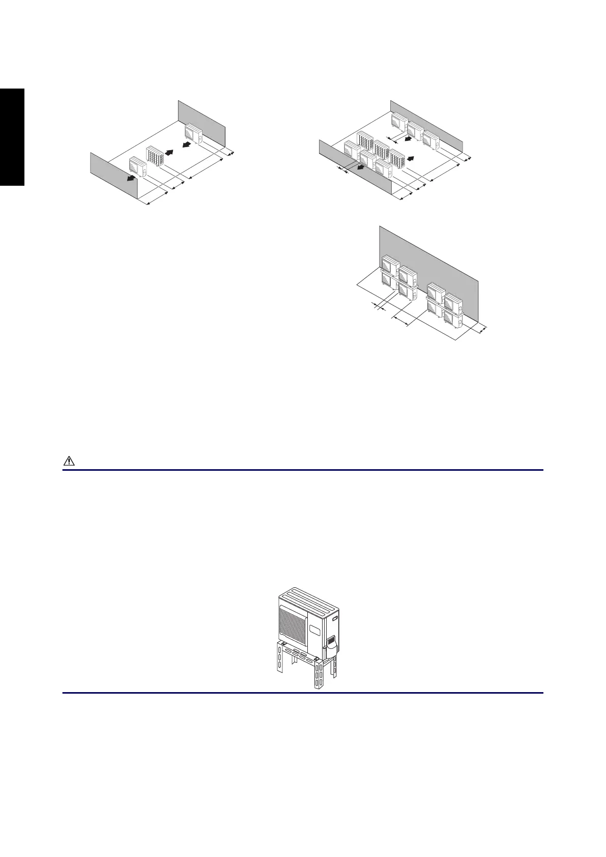 • Do not install the outdoor unit in two-stage where the drain water could freeze. Otherwise the