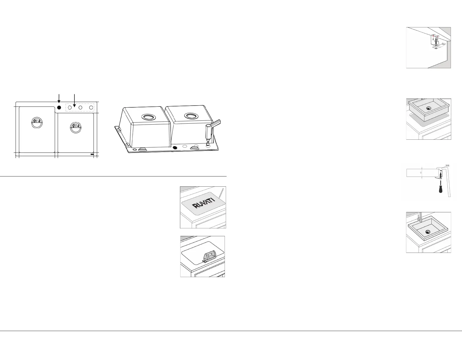 4. Attach mounting clips to the sink body using the 2 short screws provided.
