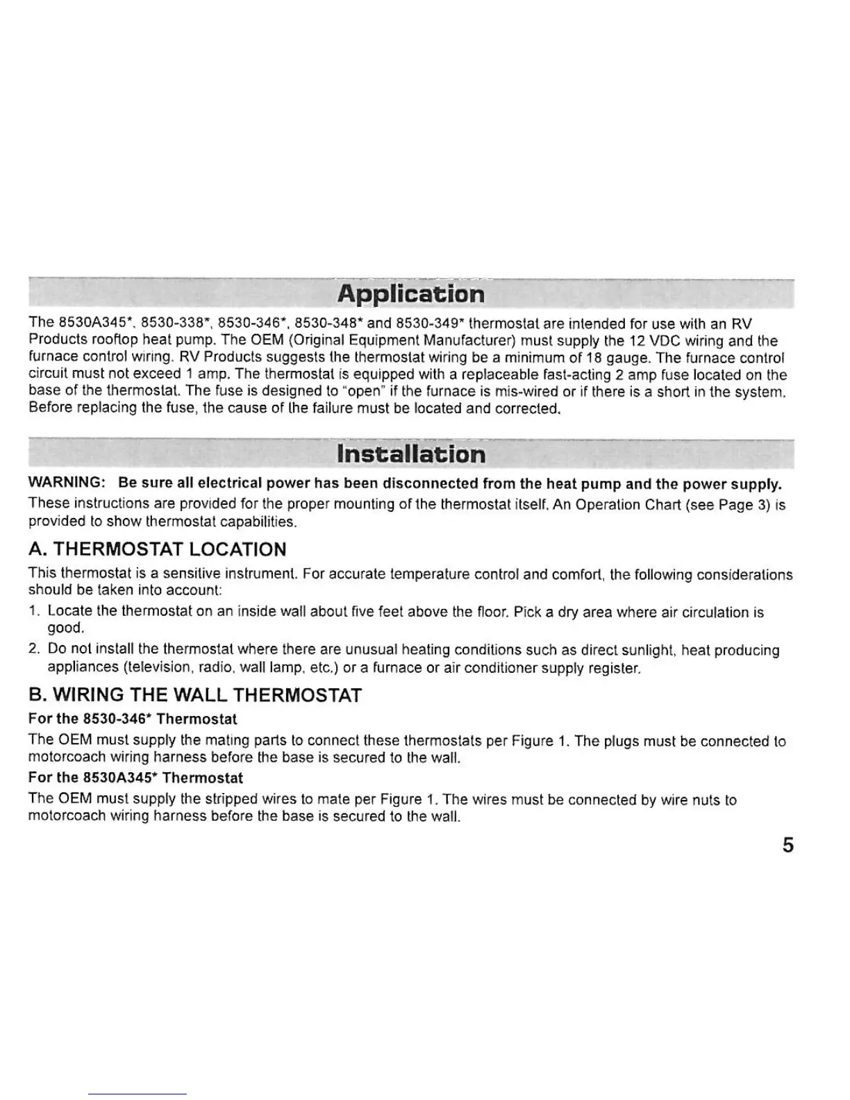 RVP 8530A345 - Application; Installation; Thermostat Location; Wiring the Wall Thermostat