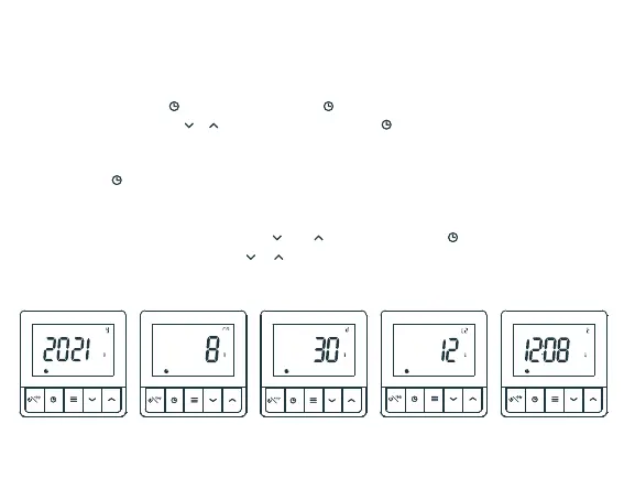 Press and hold ‘ ’ for 4 seconds, press ‘ ’ to select year, month, day, time