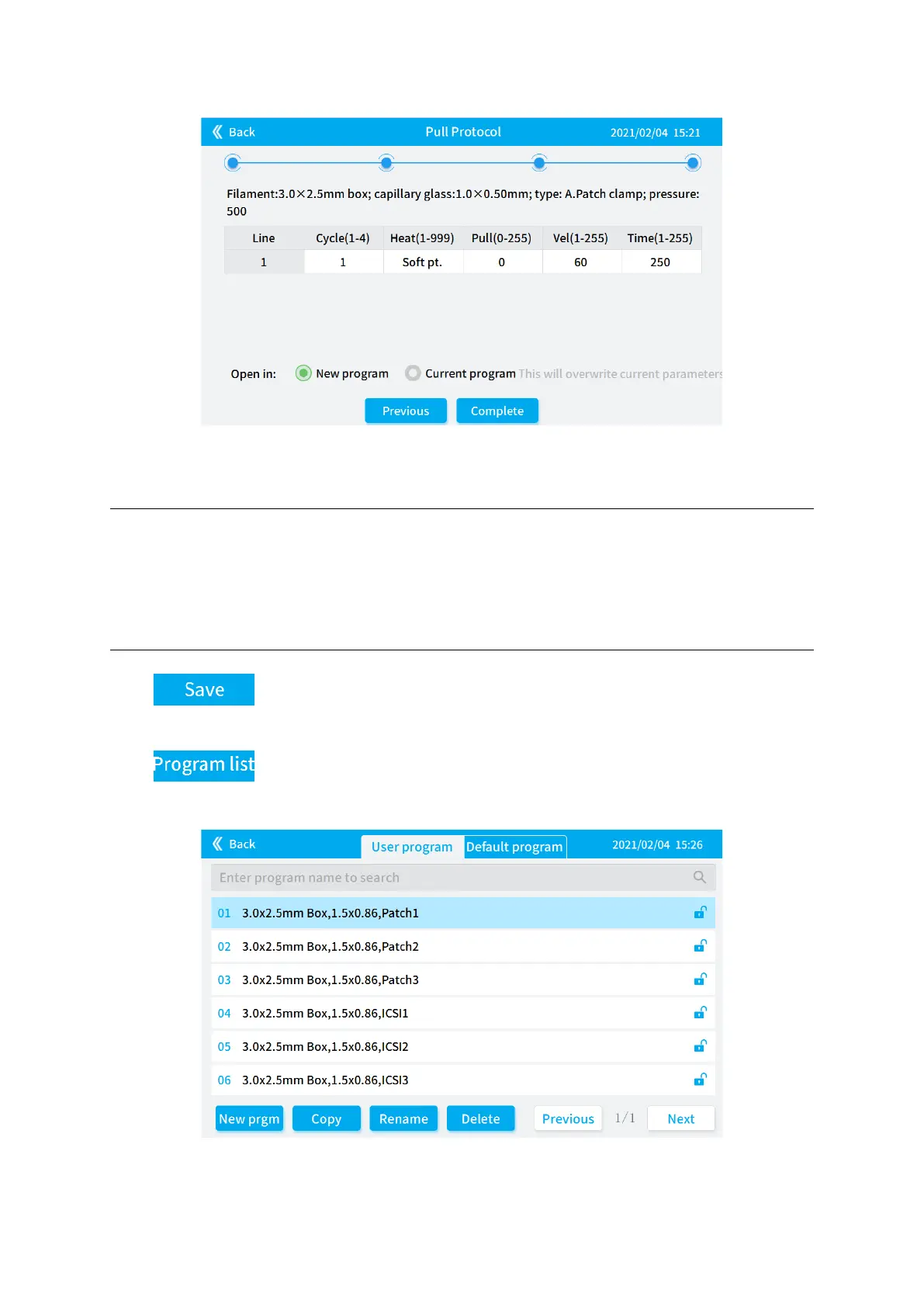 Click on the [Main Interface] to view all saved programs. Up to 99 items can be