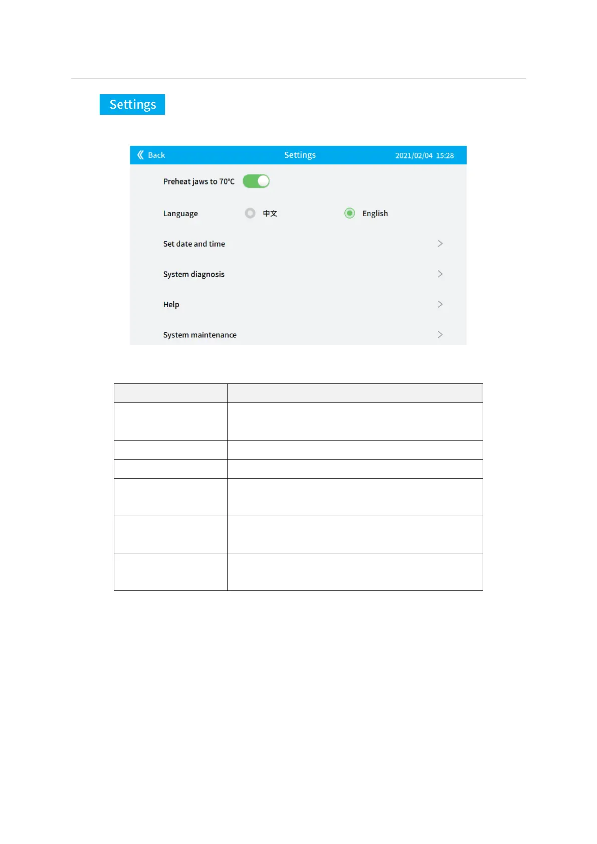 referring to 4.10 Preheat jaws.
