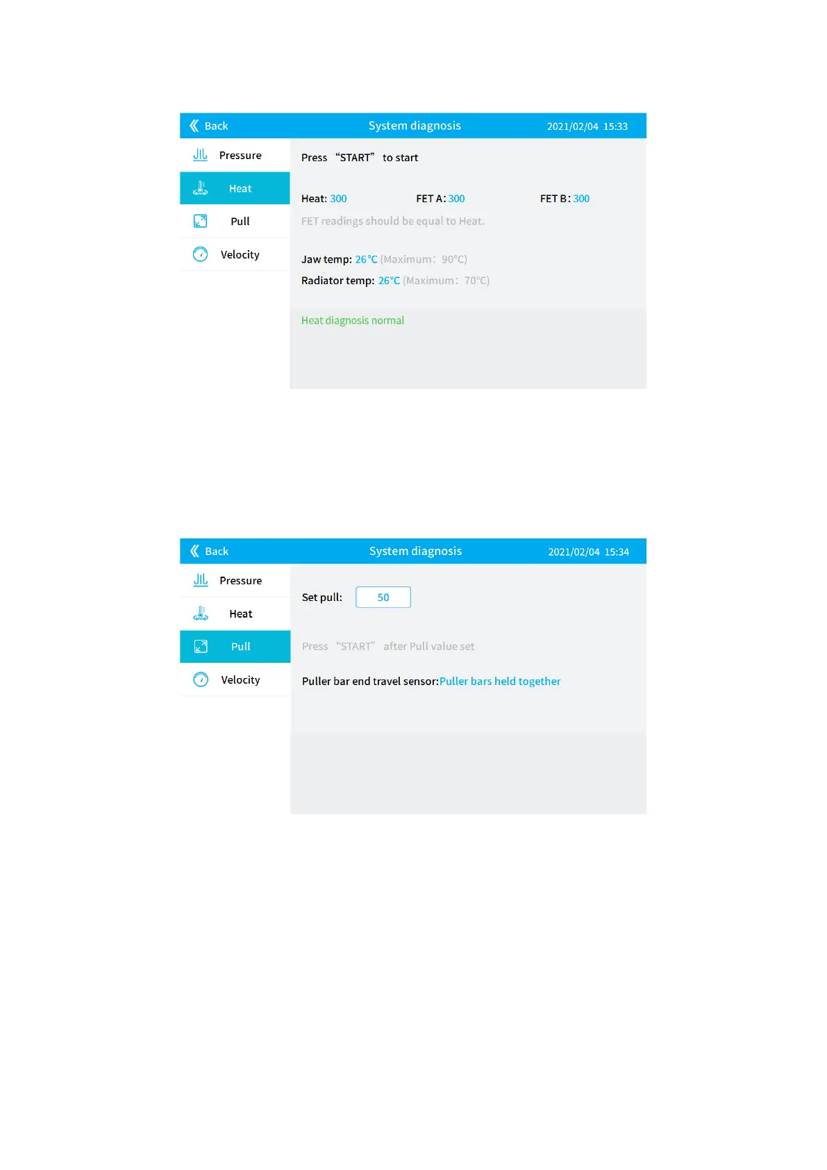 press the green [START] button on the right side of the display. Set the pull value to correspond