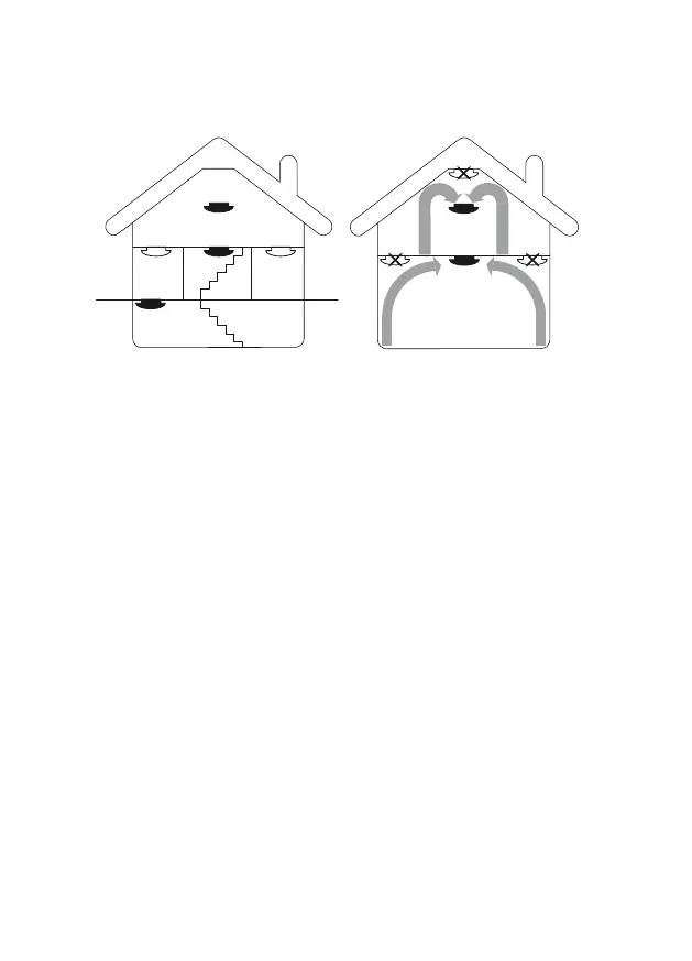 Die Anbringung im Raum muss stets in Deckenmitte erfolgen.
