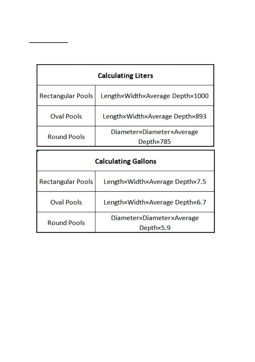 recommended levels. Use the equations below to determine the size of your pool.