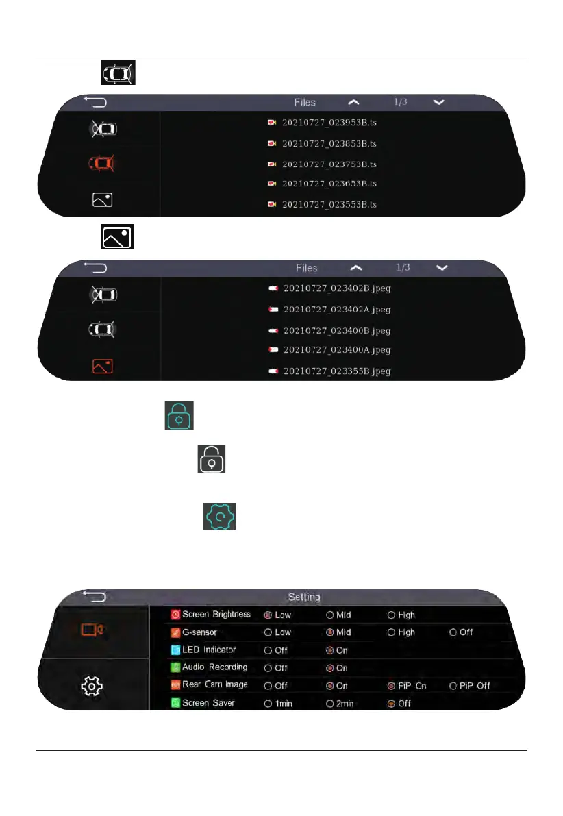 Rydeen TOMBO 360 - File Lock Icon; Setting Menu Icon