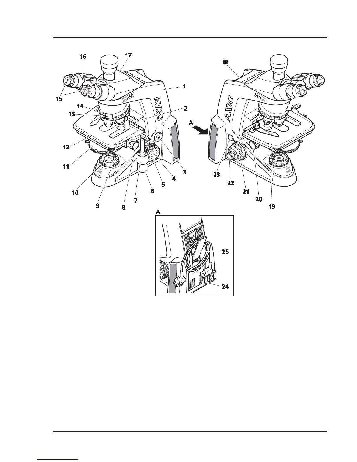 Axio Lab.A1 Control and functional elements on microscope Carl Zeiss