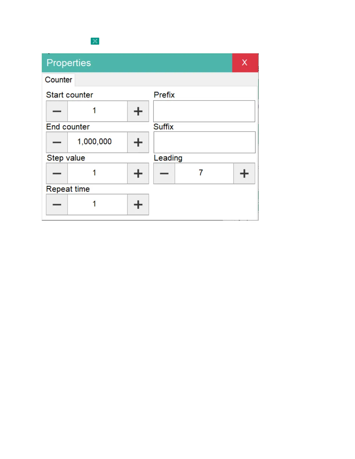 Suffix: Set suffix for counter.