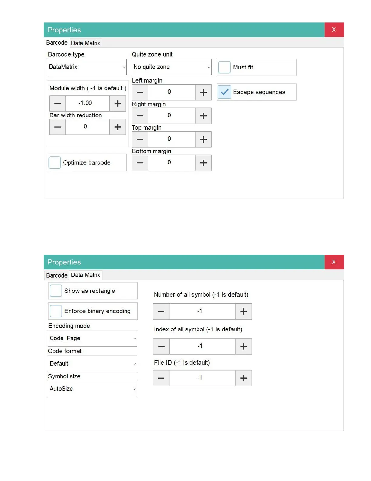 Depending on the barcode type, you can adjust different properties: Show as rectangle,