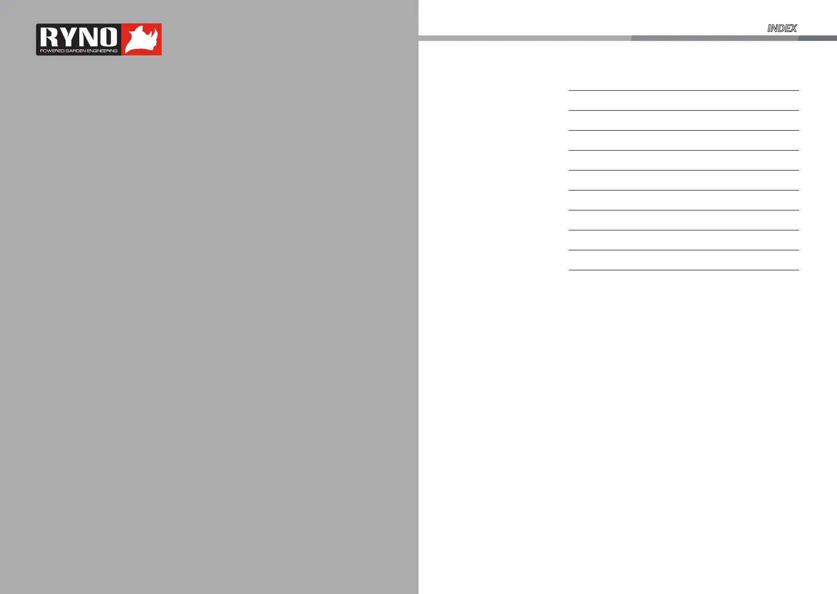 RYNO XSS40E - Table of Contents