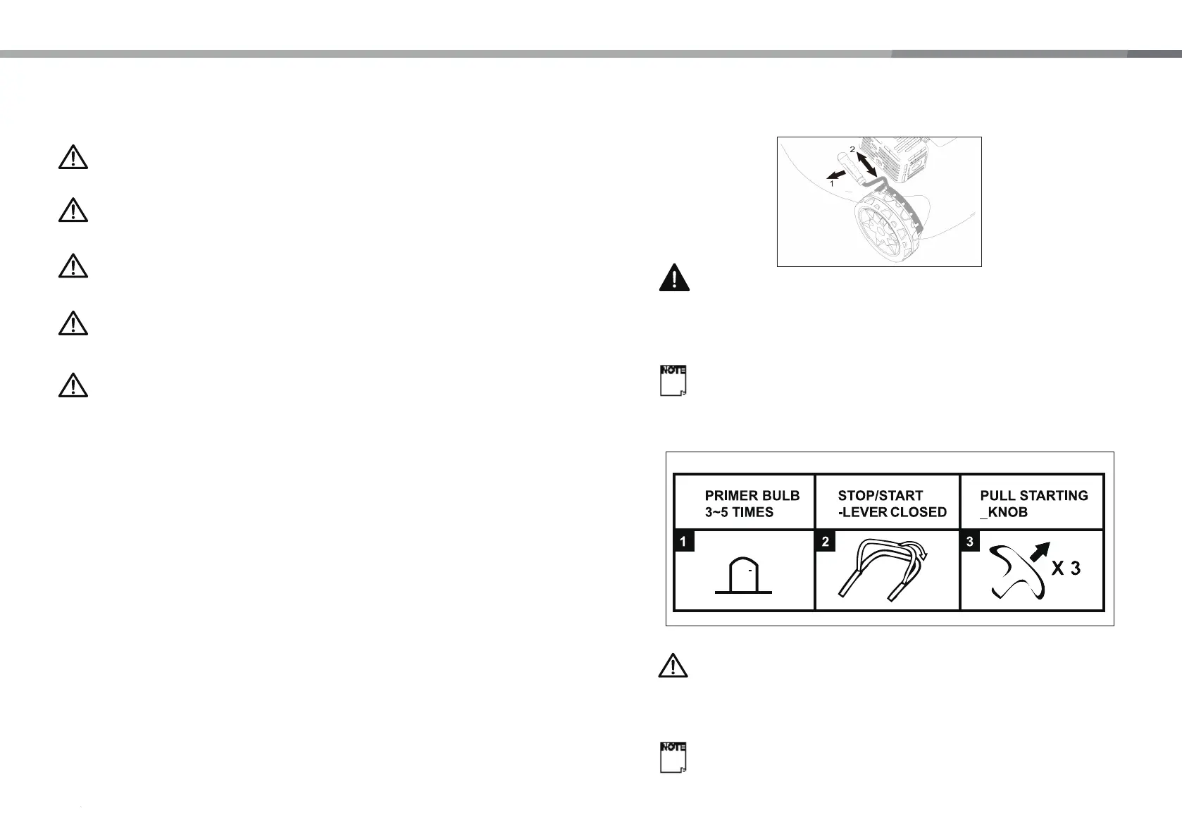 NOTE! To start the engine, make sure that the spark plug cap is located on the spark plug