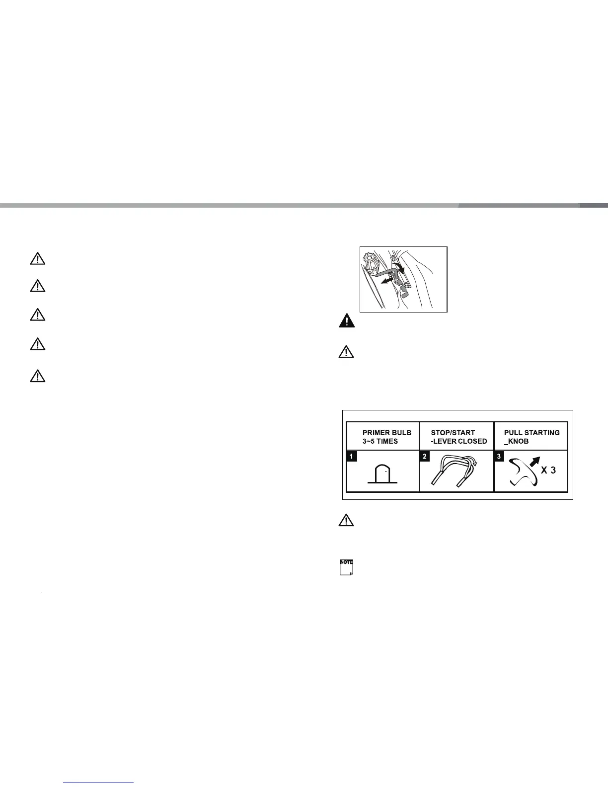NOTE! To start the engine, make sure that the spark plug cap is located on the spark plug