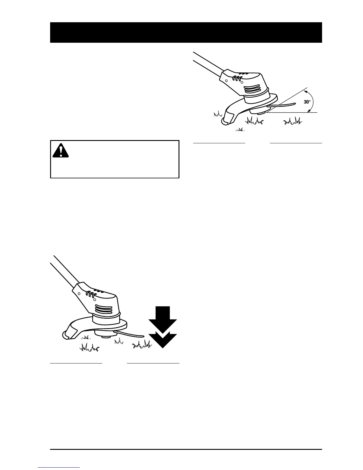 • Attempting to cut thick, stalky weeds.
