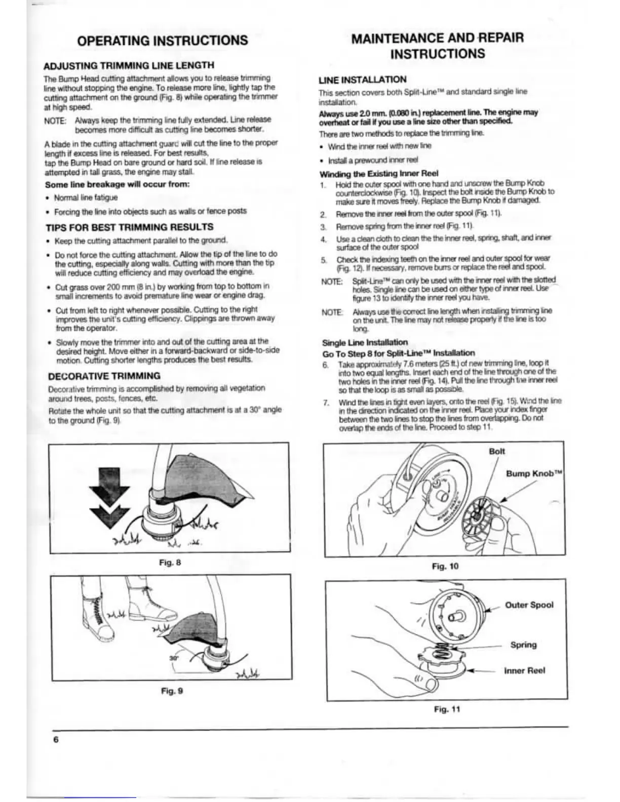 Ryobi 305RT - OPERATING INSTRUCTIONS; ADJUSTING TRIMMING LINE LENGTH; TIPS FOR BEST TRIMMING RESULTS; MAINTENANCE AND REPAIR INSTRUCTIONS