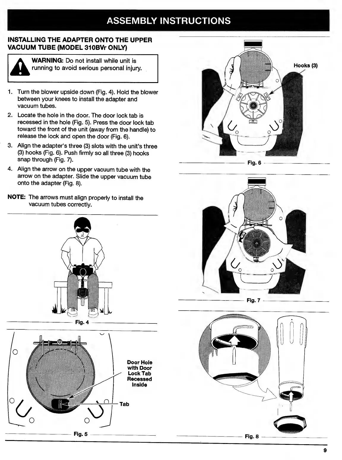 Ryobi 310BVr - Installing the Adapter Onto the Upper Vacuum Tube (Model 31 Obvr Only)
