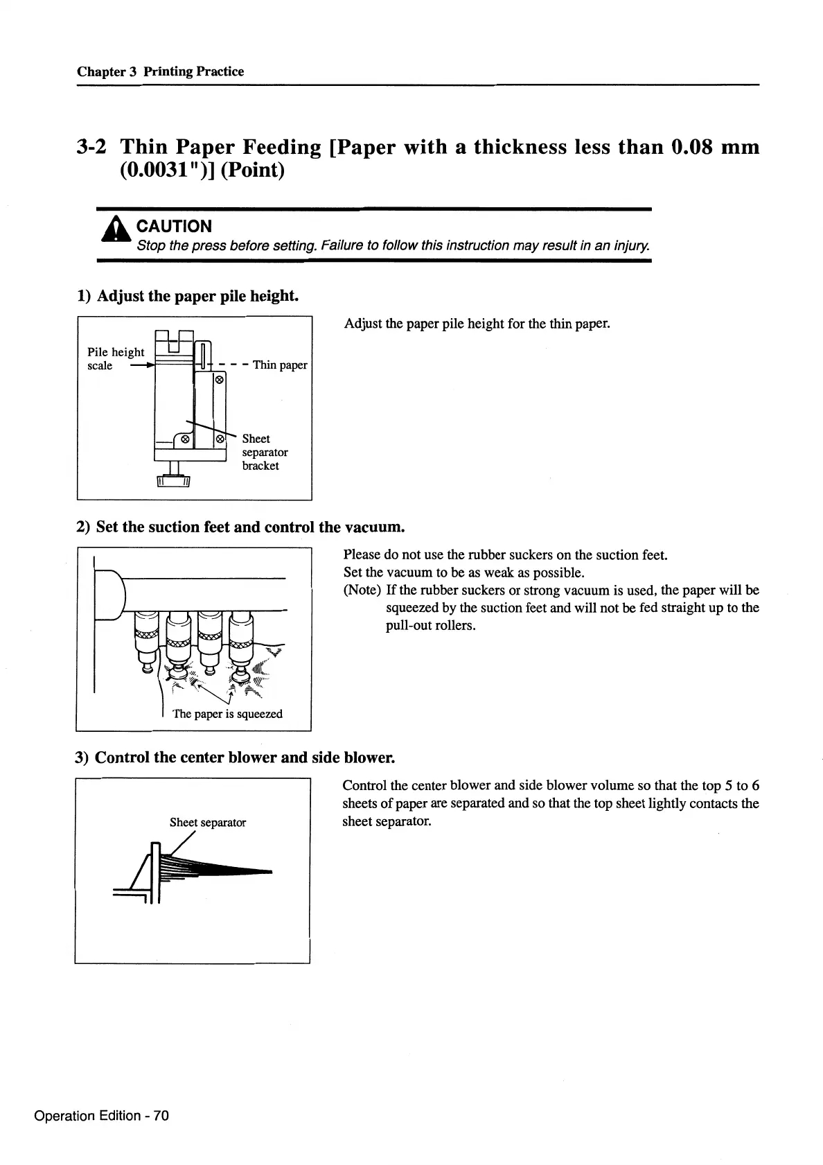 Stop the press before setting. Failure to follow this instruction