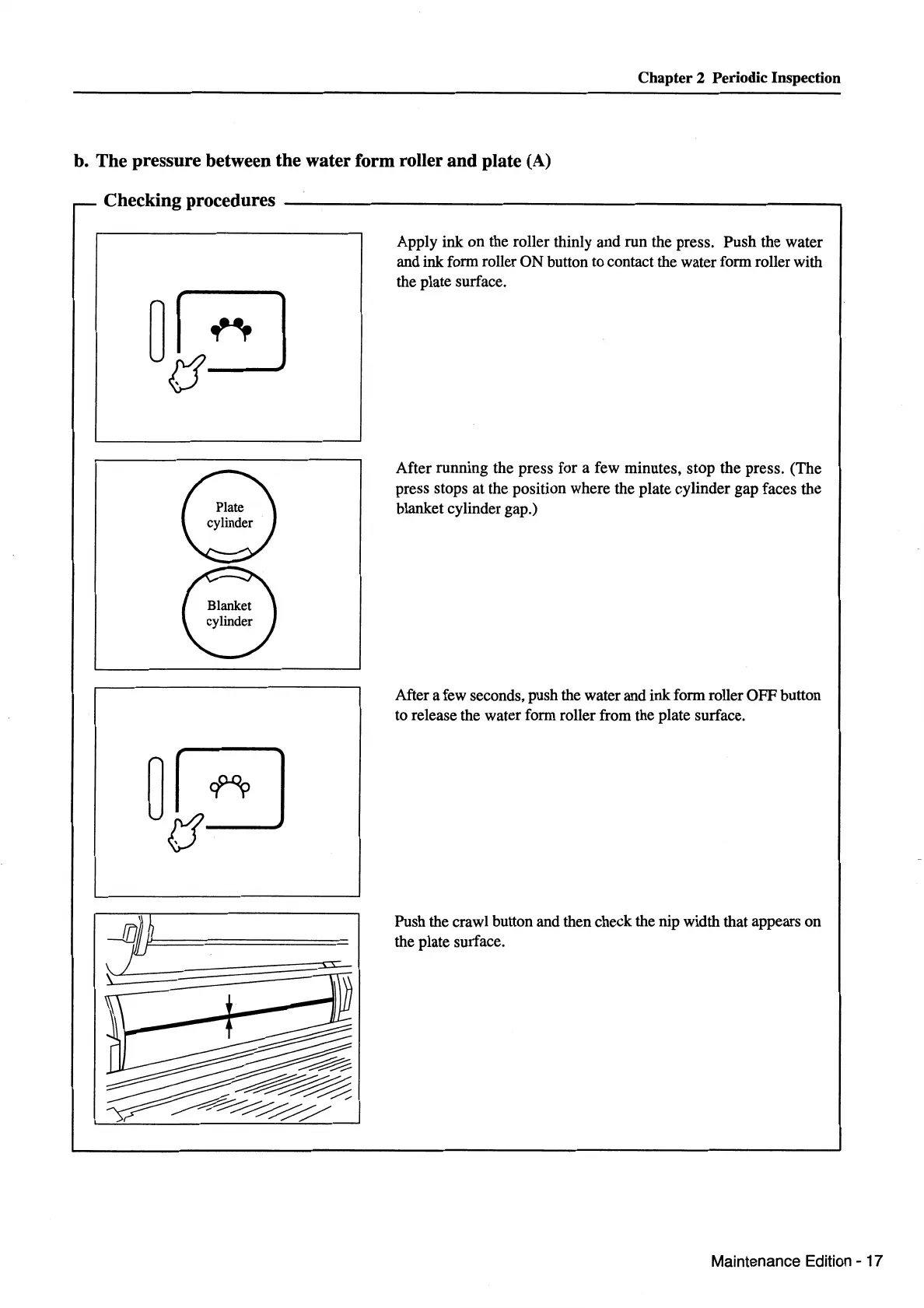 Push the crawl button and then check the nip width that appears on