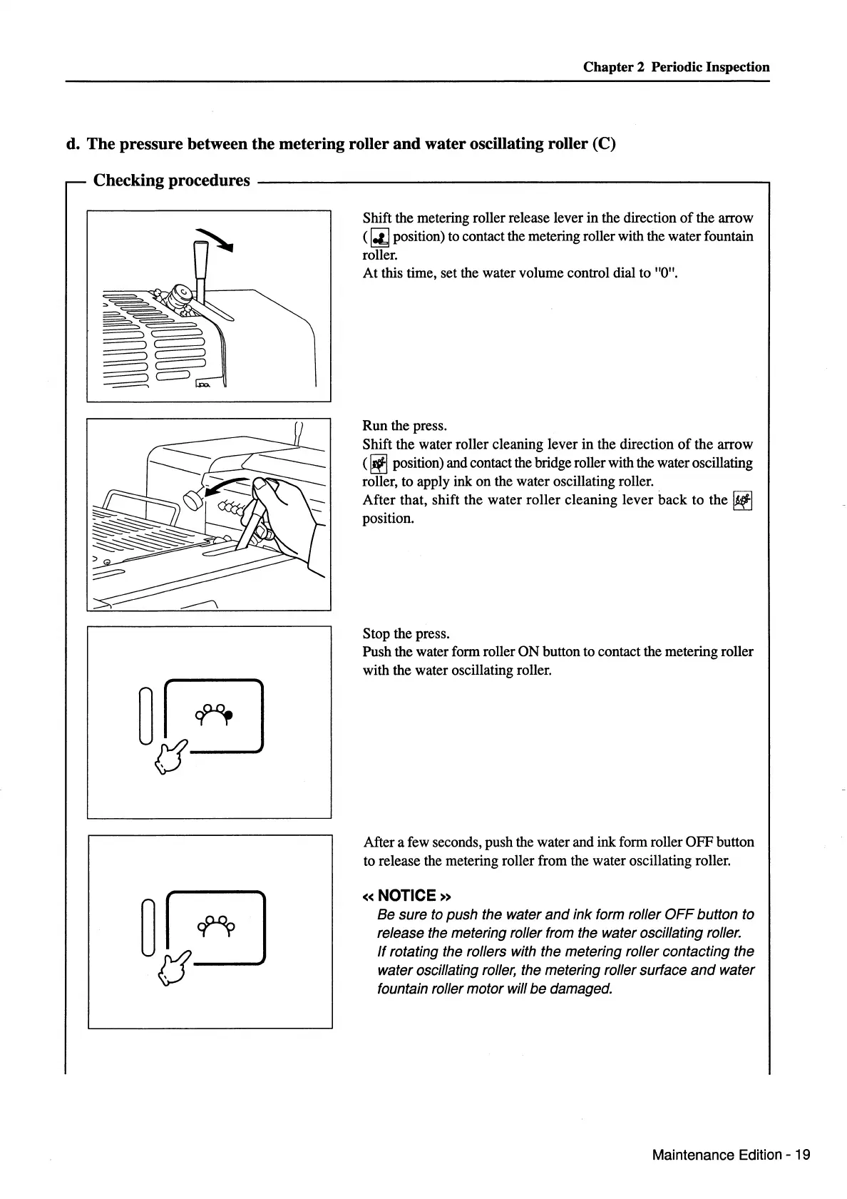 release the metering roller from the water oscillating roller.