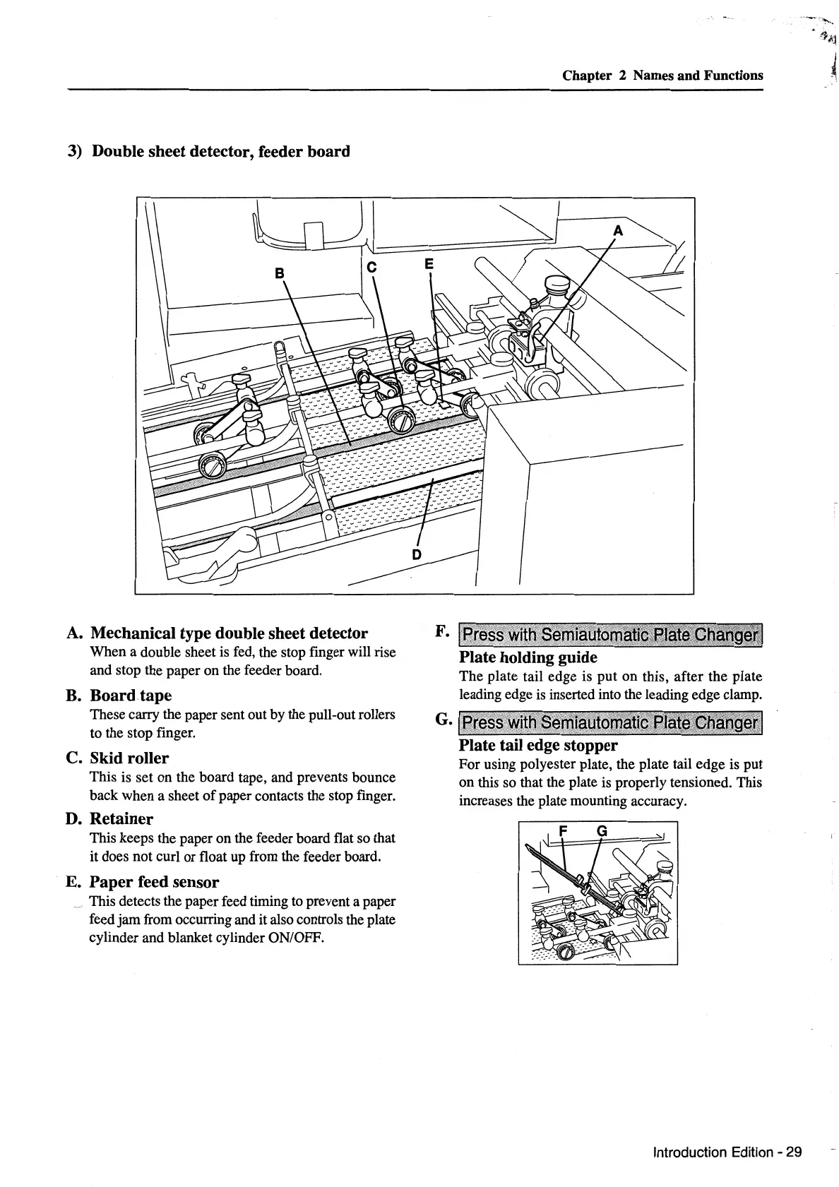 3) Double sheet detector, feeder board
