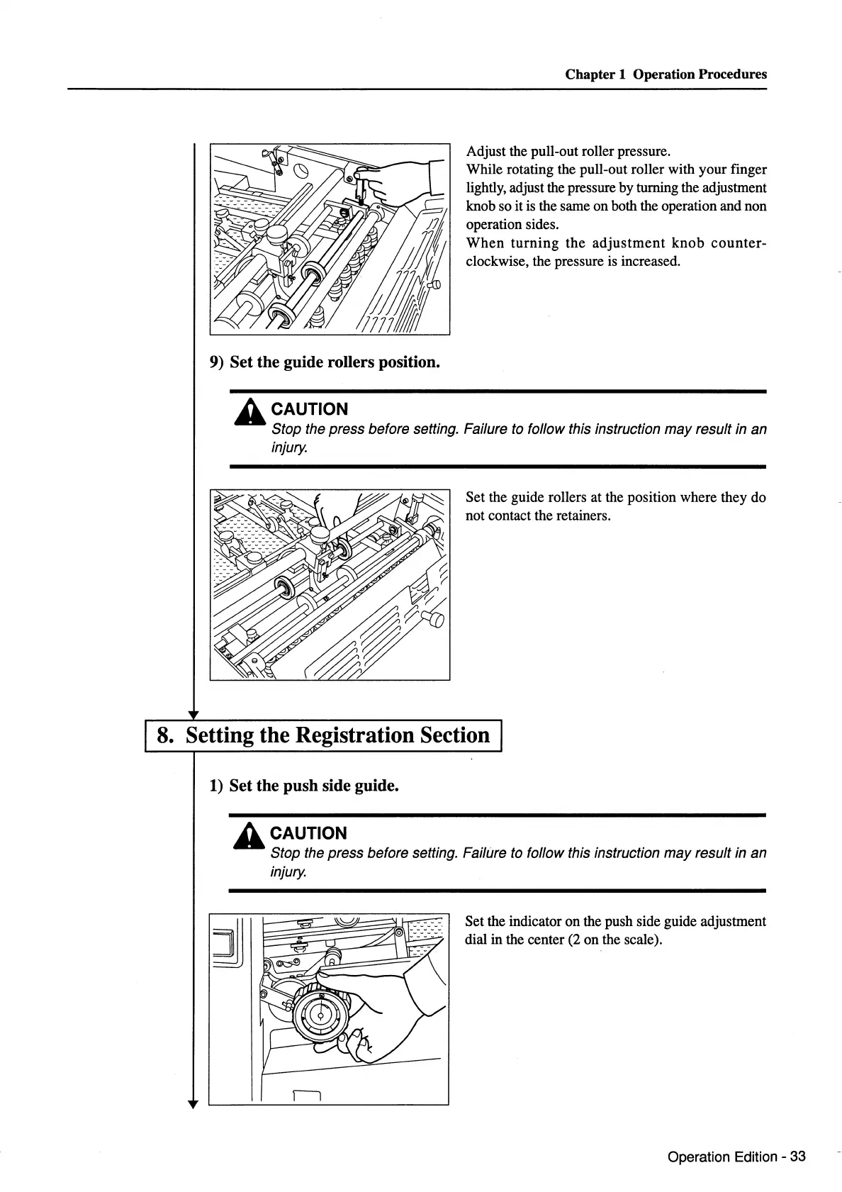 Stop the press before setting. Failure to follow this instruction