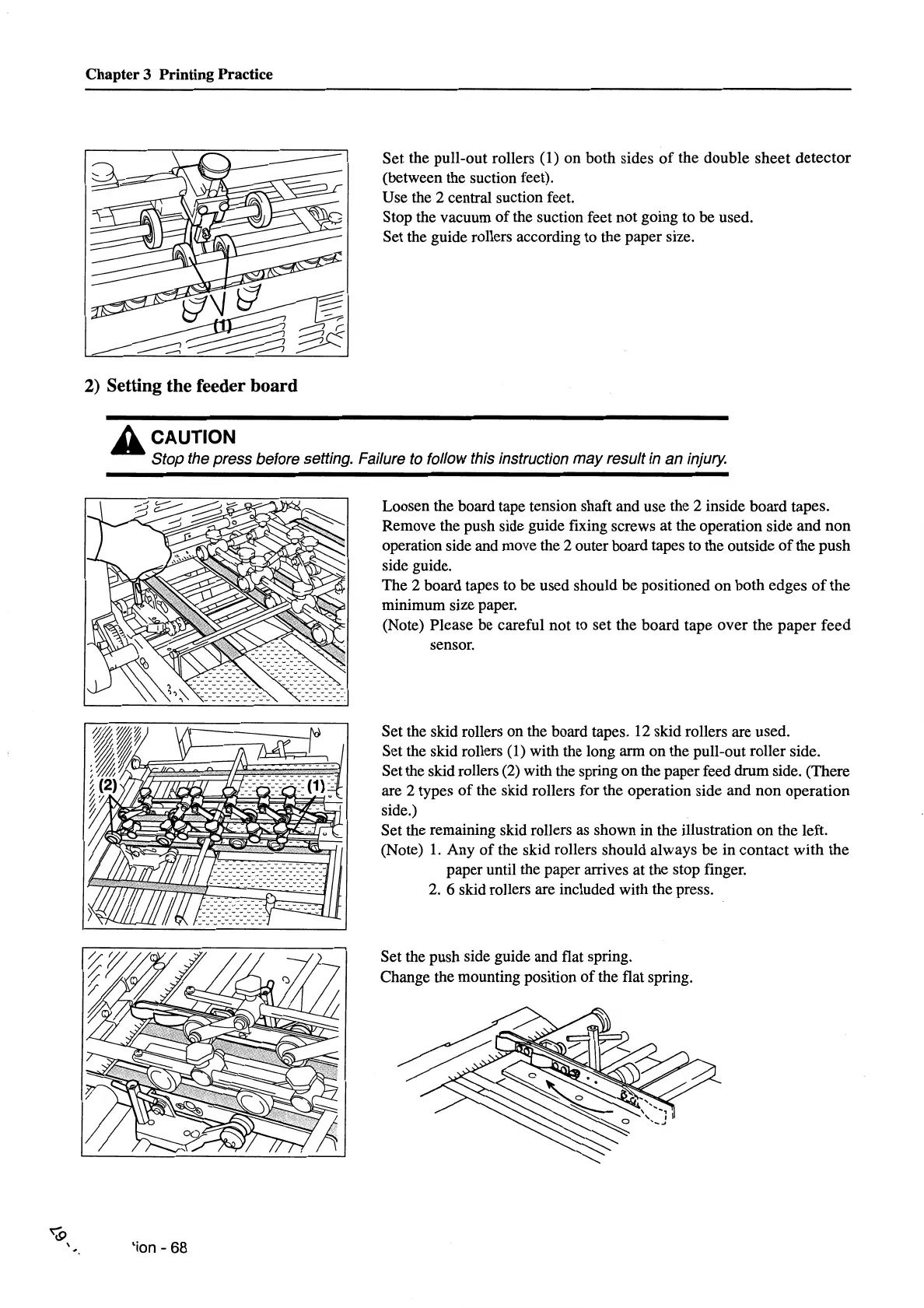 Set the skid rollers on the board tapes. 12 skid rollers are used.