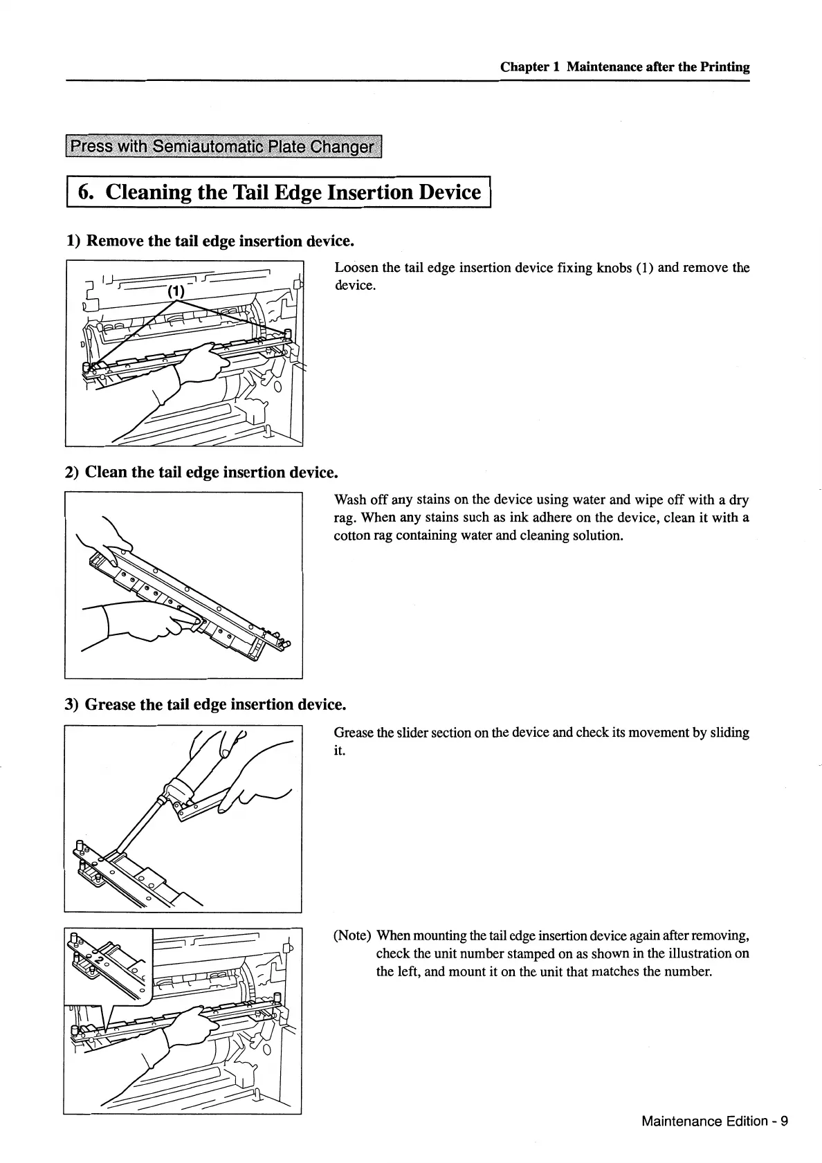 (Note) When mounting the tail edge insertion device again after removing,