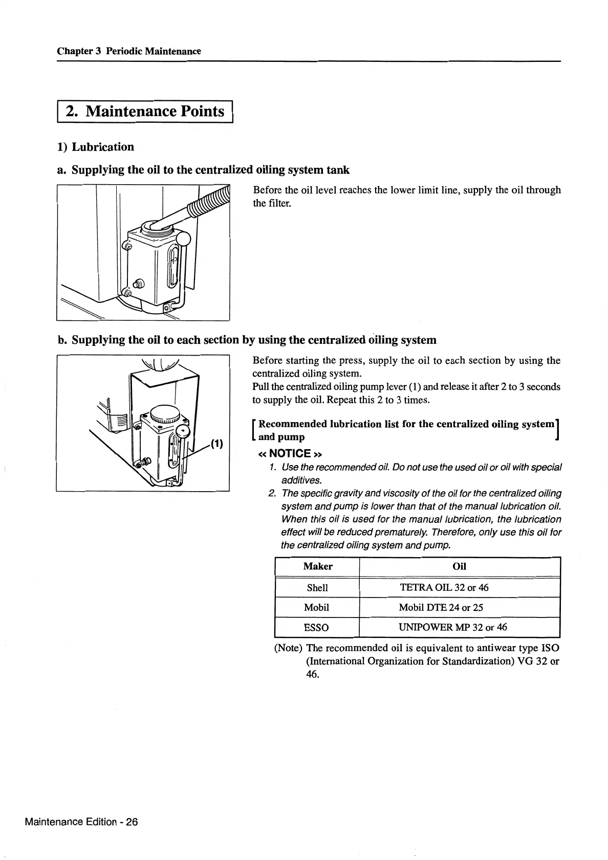 the manual lubrication oil.