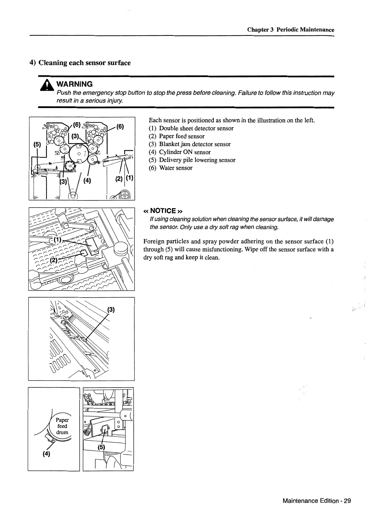 Push the emergency stop button to stop the press before cleaning. Failure to follow this instruction