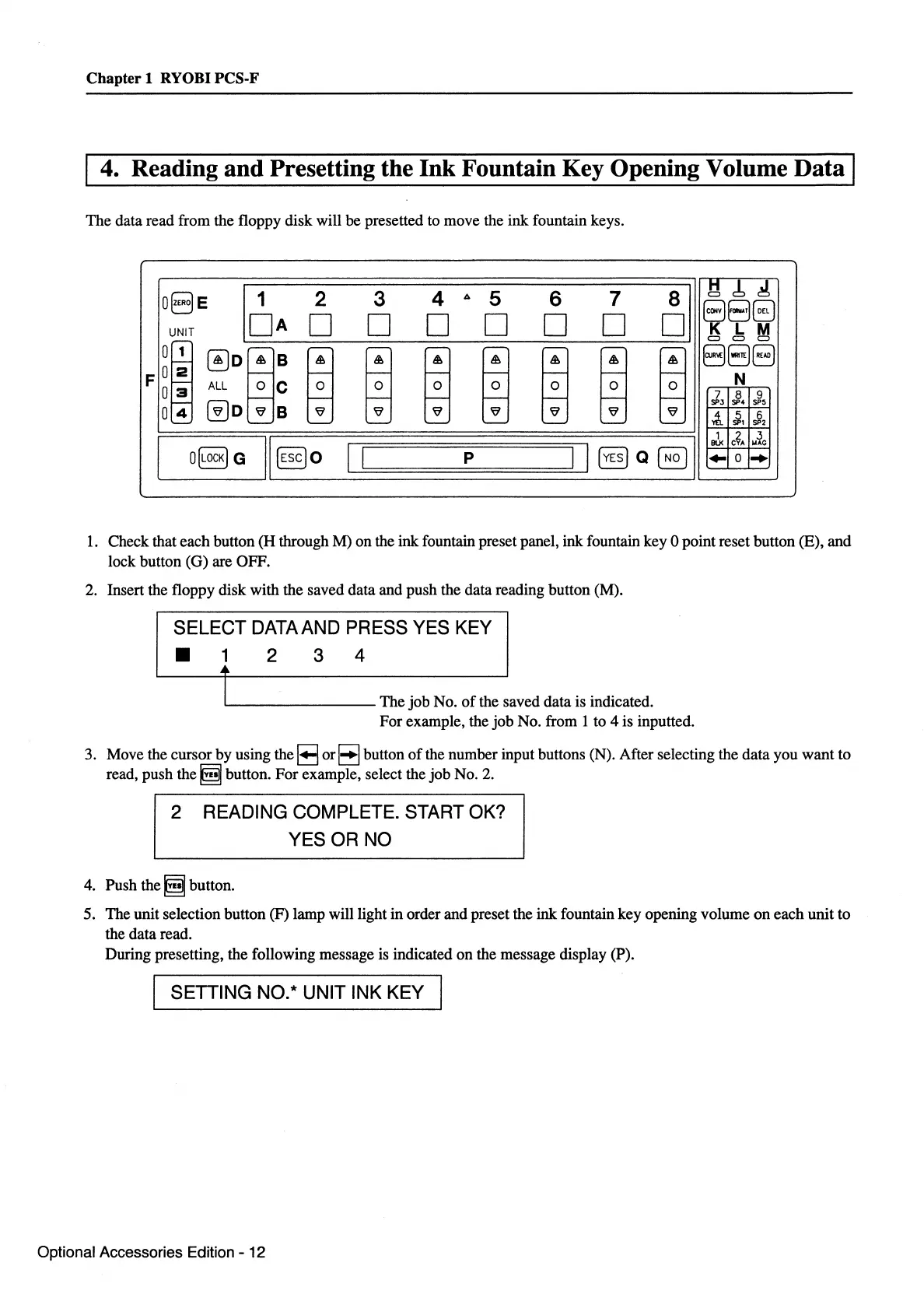 2. Insert the floppy disk with the saved data and push the data reading button (M).