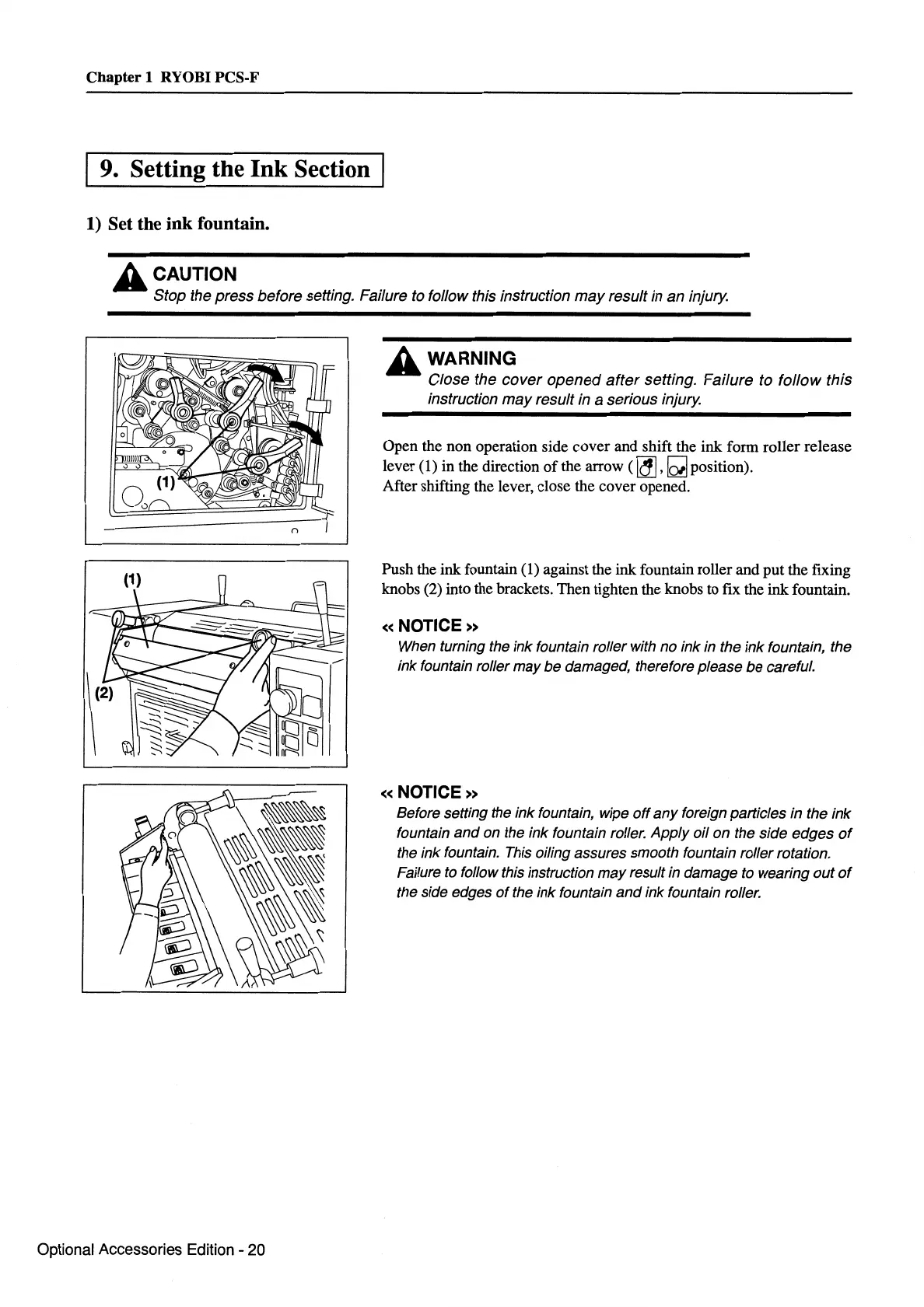 knobs (2) into the brackets. Then tighten the knobs to fix the ink fountain.