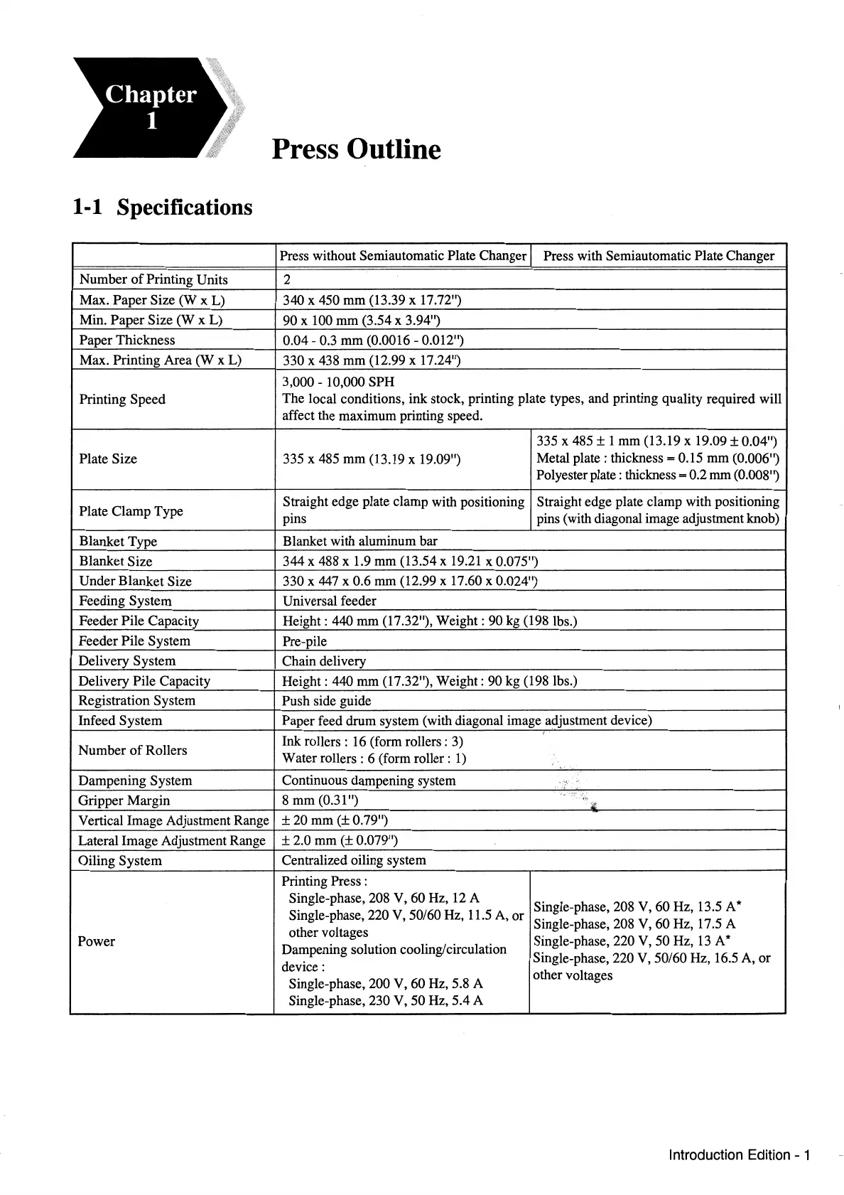 1-1 Specifications