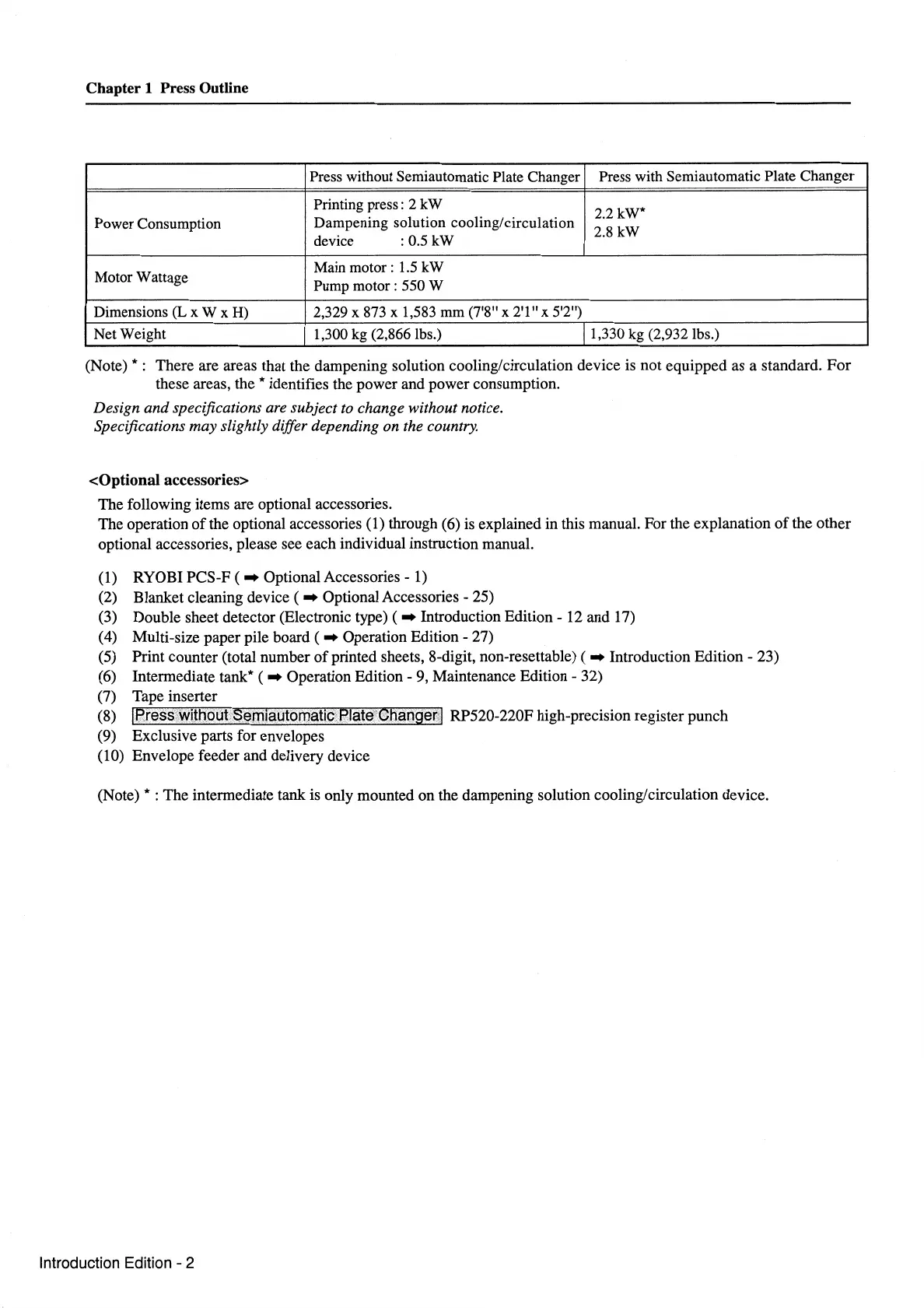(Note)* : There are areas that the dampening solution cooling/circulation device is not equipped as a standard.