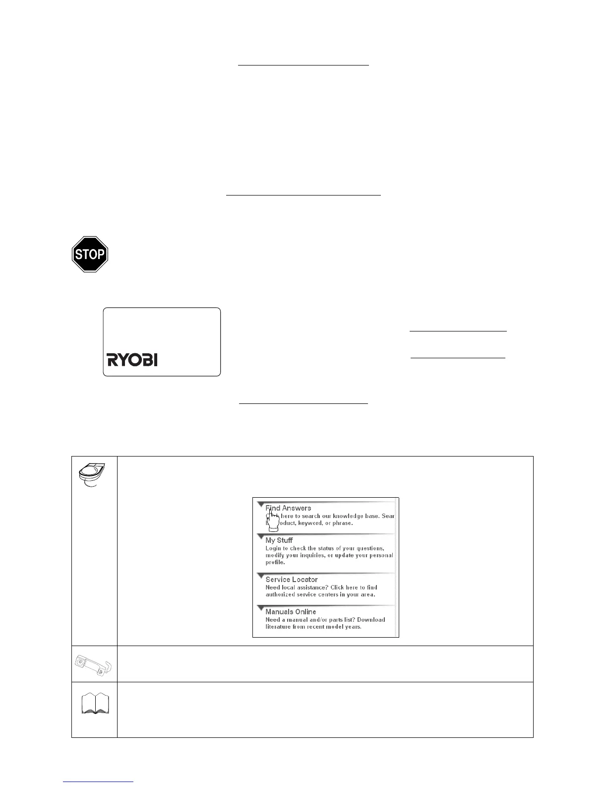 Visit ryobioutdoor.com for many useful suggestions. Click on Customer Support button and