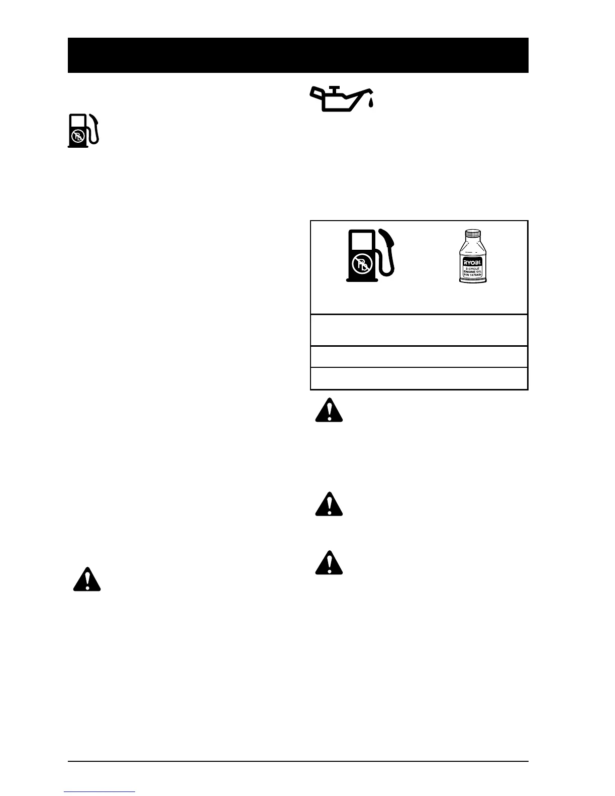 fuel can. Use a 32:1 fuel/oil ratio. Do not mix