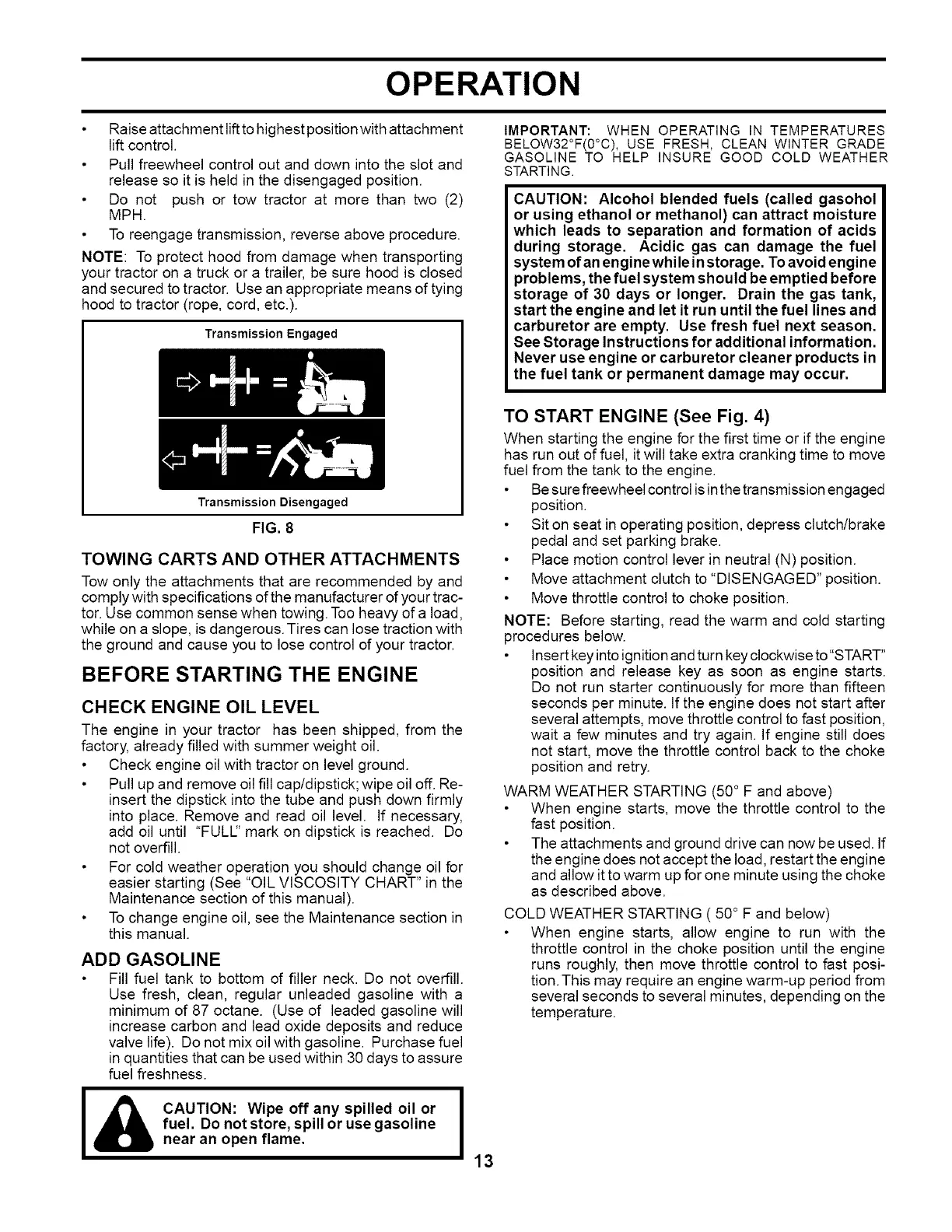 BEFORE STARTING THE ENGINE