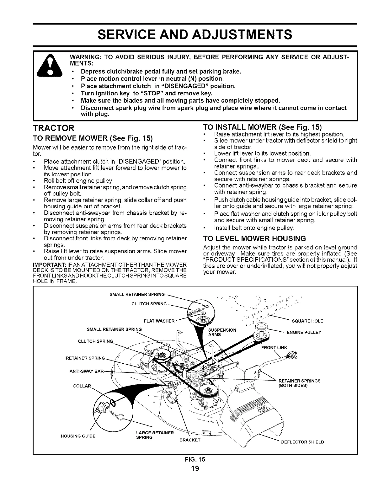 WARNING: TO AVOID SERIOUS INJURY, BEFORE PERFORMING ANY SERVICE OR ADJUST-