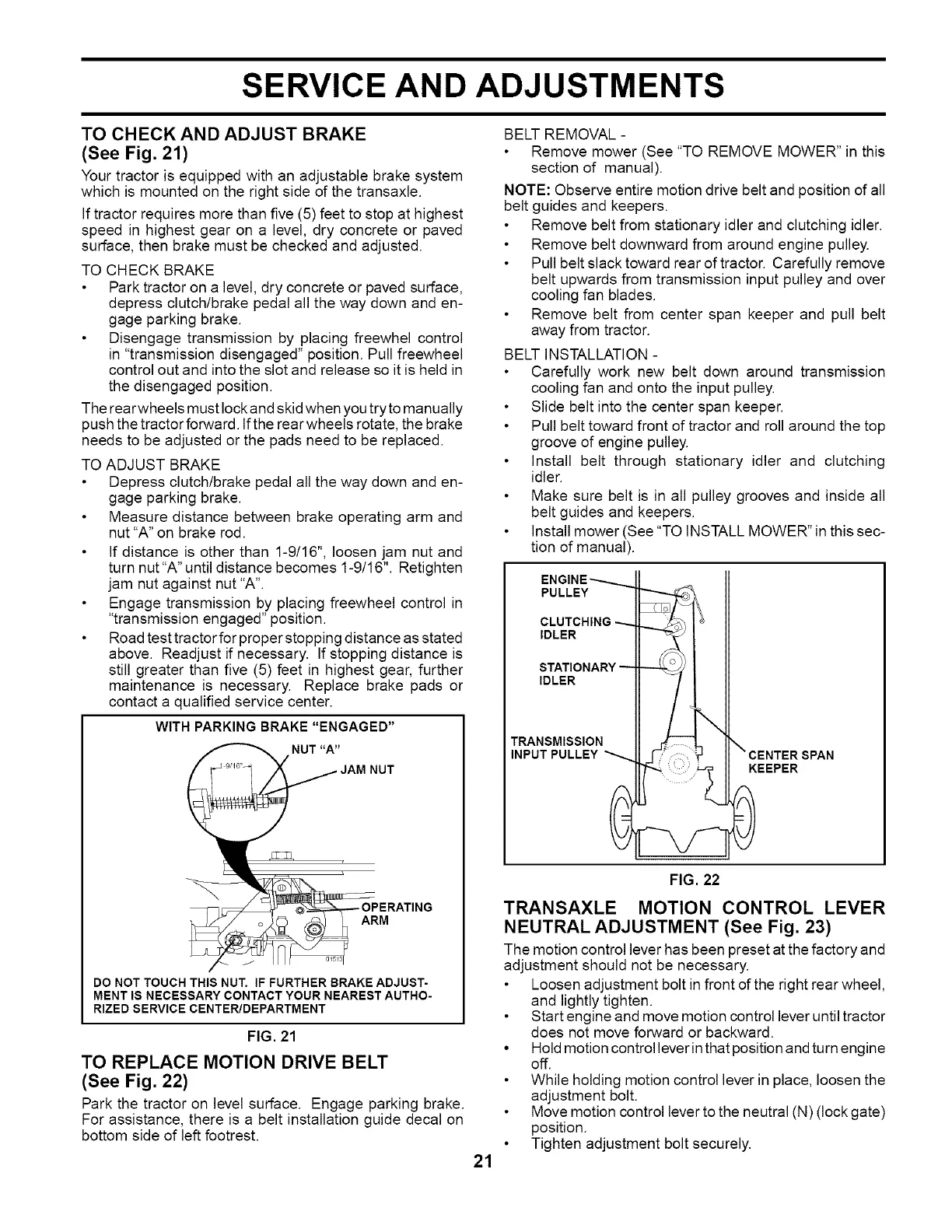 NEUTRAL ADJUSTMENT (See Fig. 23)