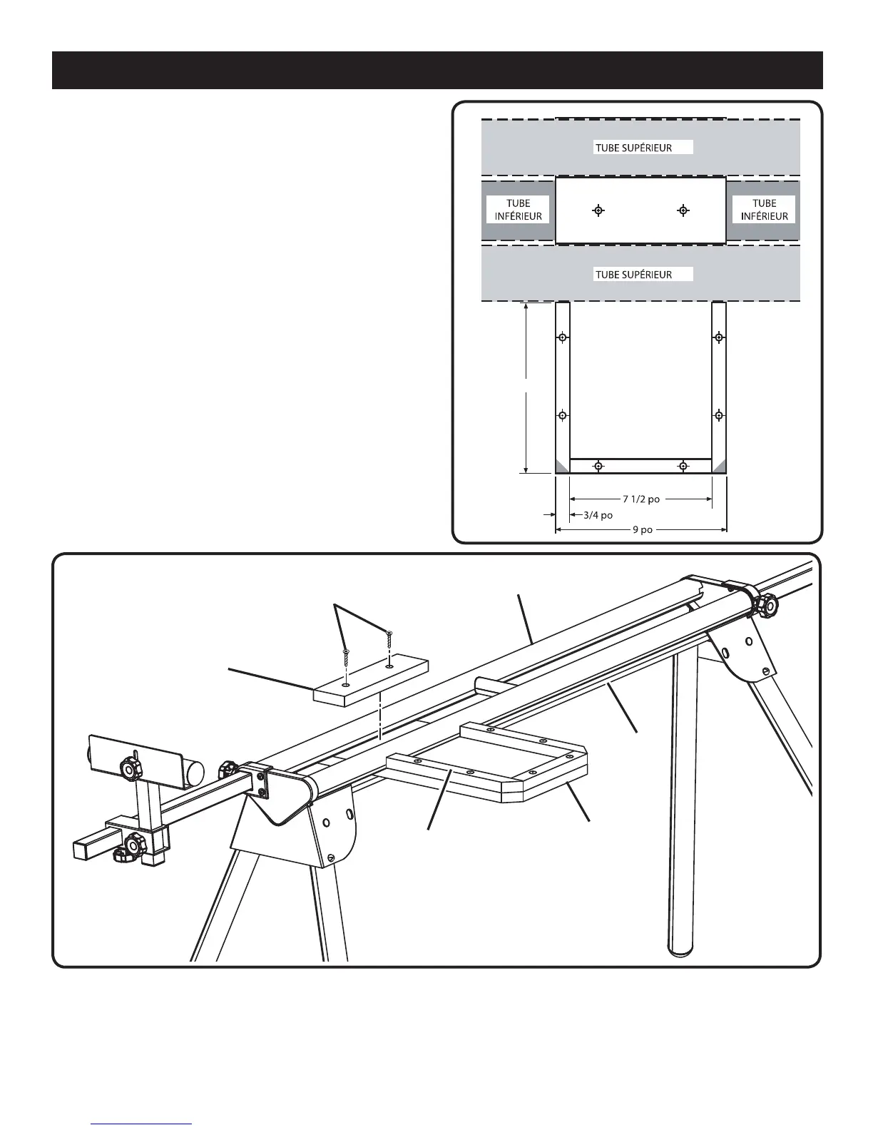 x 9 po) à l’horizontale, entre les deux pièces verticales.