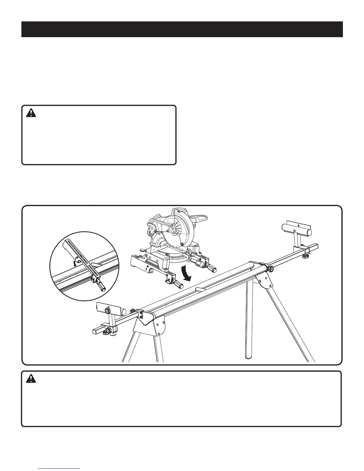 sont abaissés (position verrouillée) il ne devrait pas être possible de séparer la scie et le support des rails. Si les supports