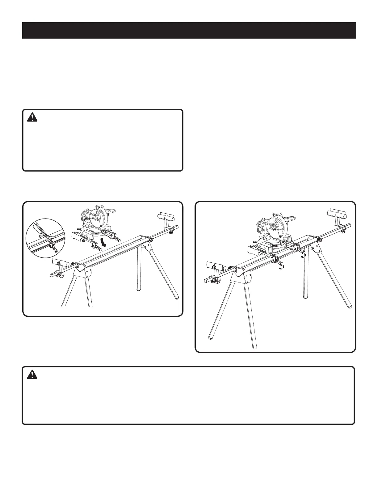 sont abaissés, retirer immédiatement la scie et son support du stand et serrer la vis de réglage, comme décrit à la sec-