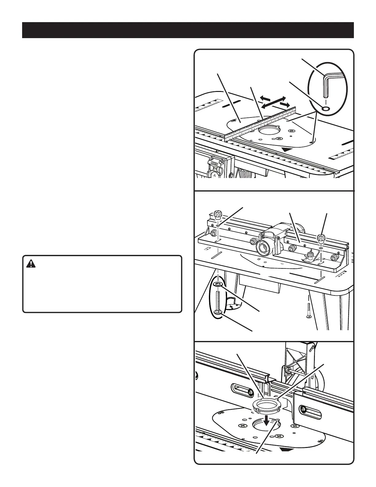 Placer la table à toupie, le côté droit vers le haut, et l’ar-