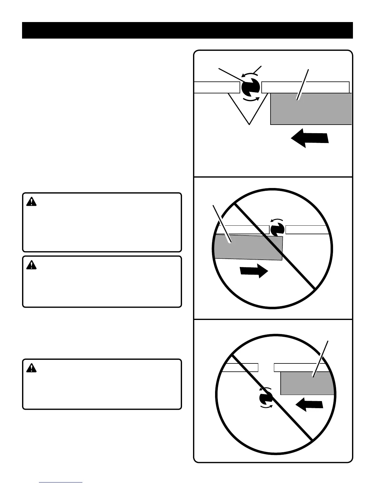 Lors d’une coupe sur le côté ou le rebord, ne jamais