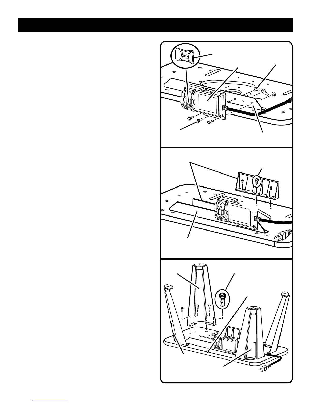 Alinee los tres agujeros de las protecciones bajo la mesa con