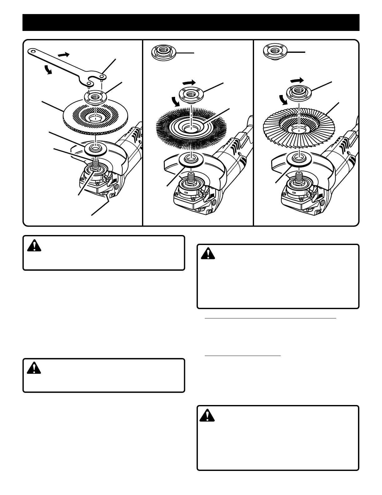 ■ To install grinding wheel and wire wheel brush: Thread