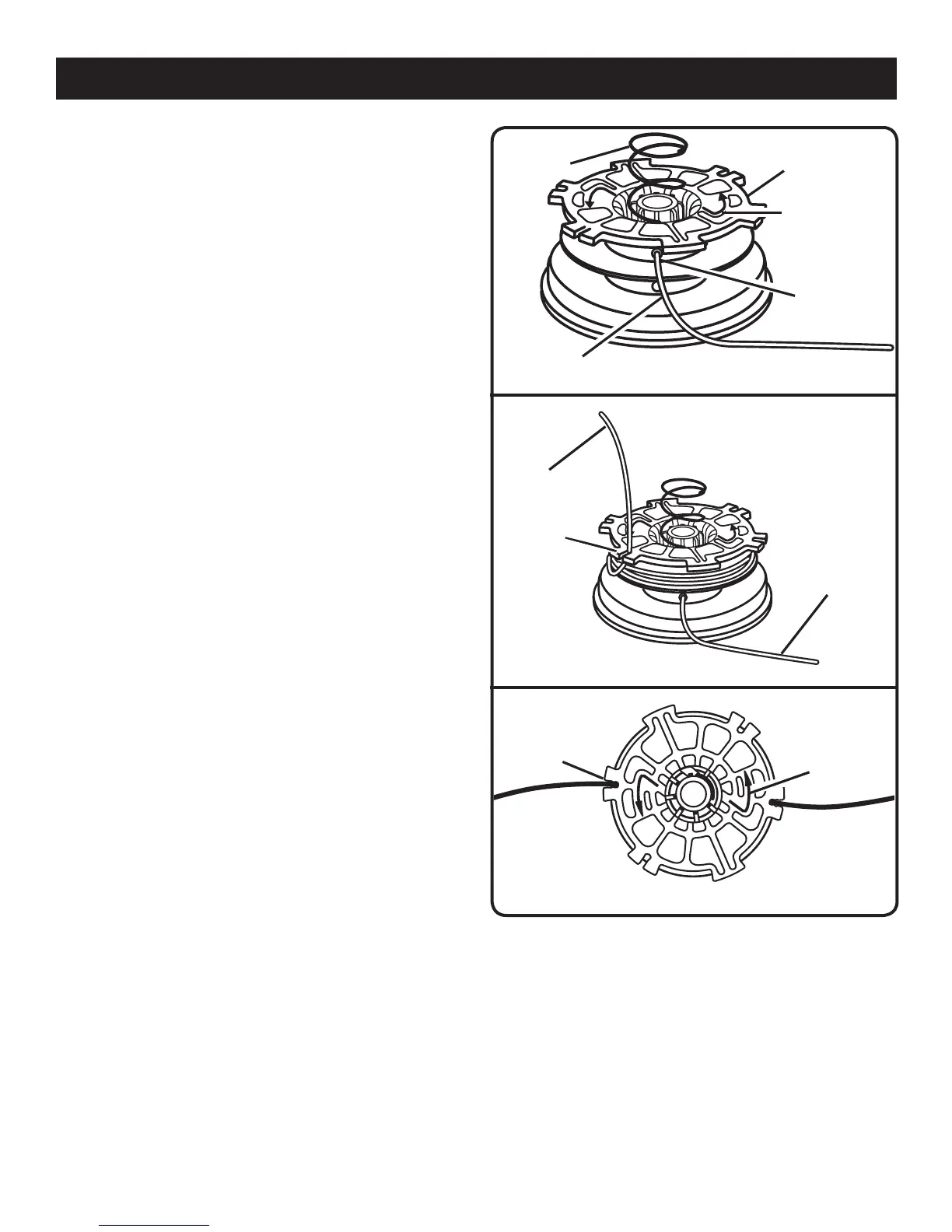 the spool. Place string in the slot on upper spool flange,
