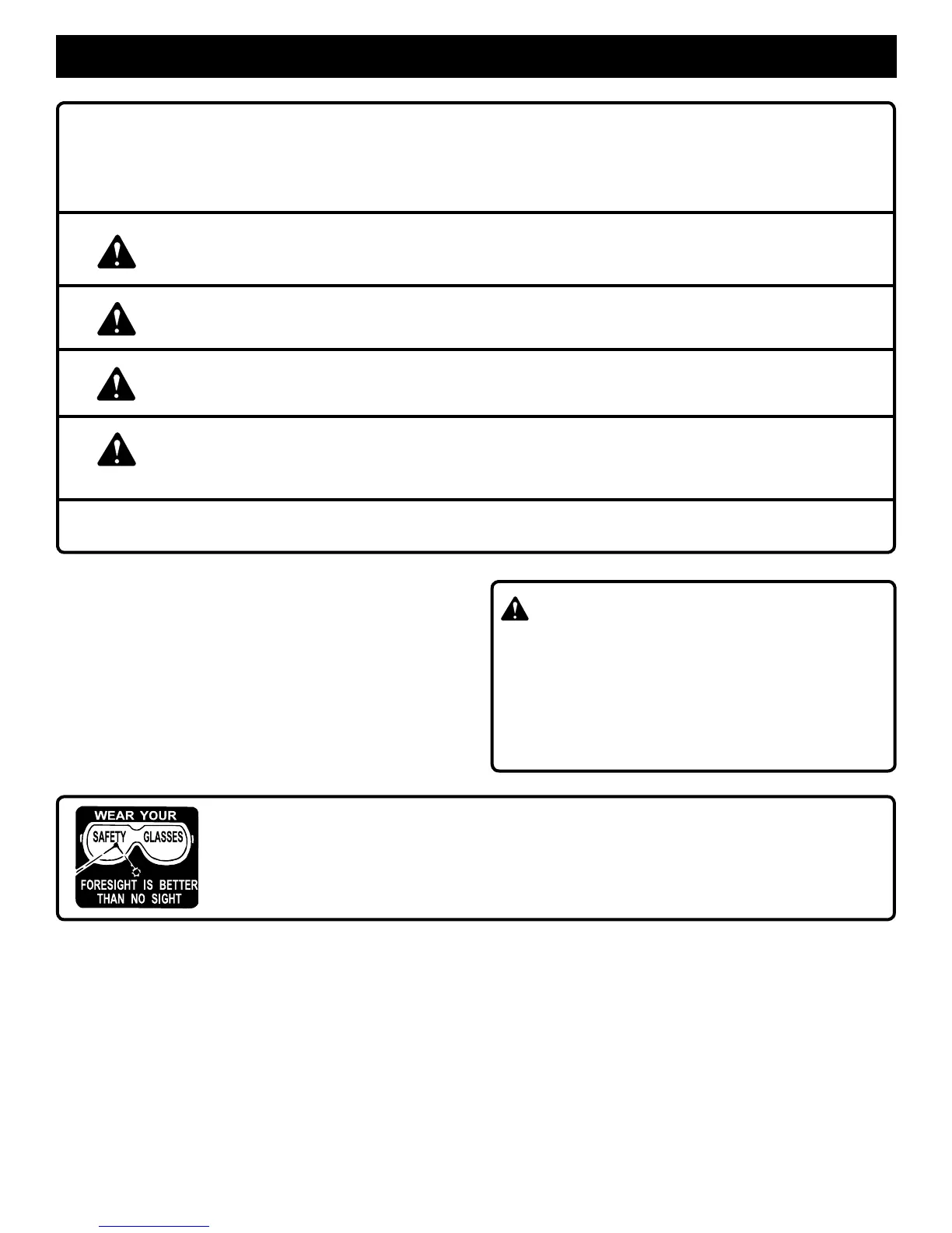 any danger. The instructions or warnings they give are not substitutes for proper accident prevention measures.